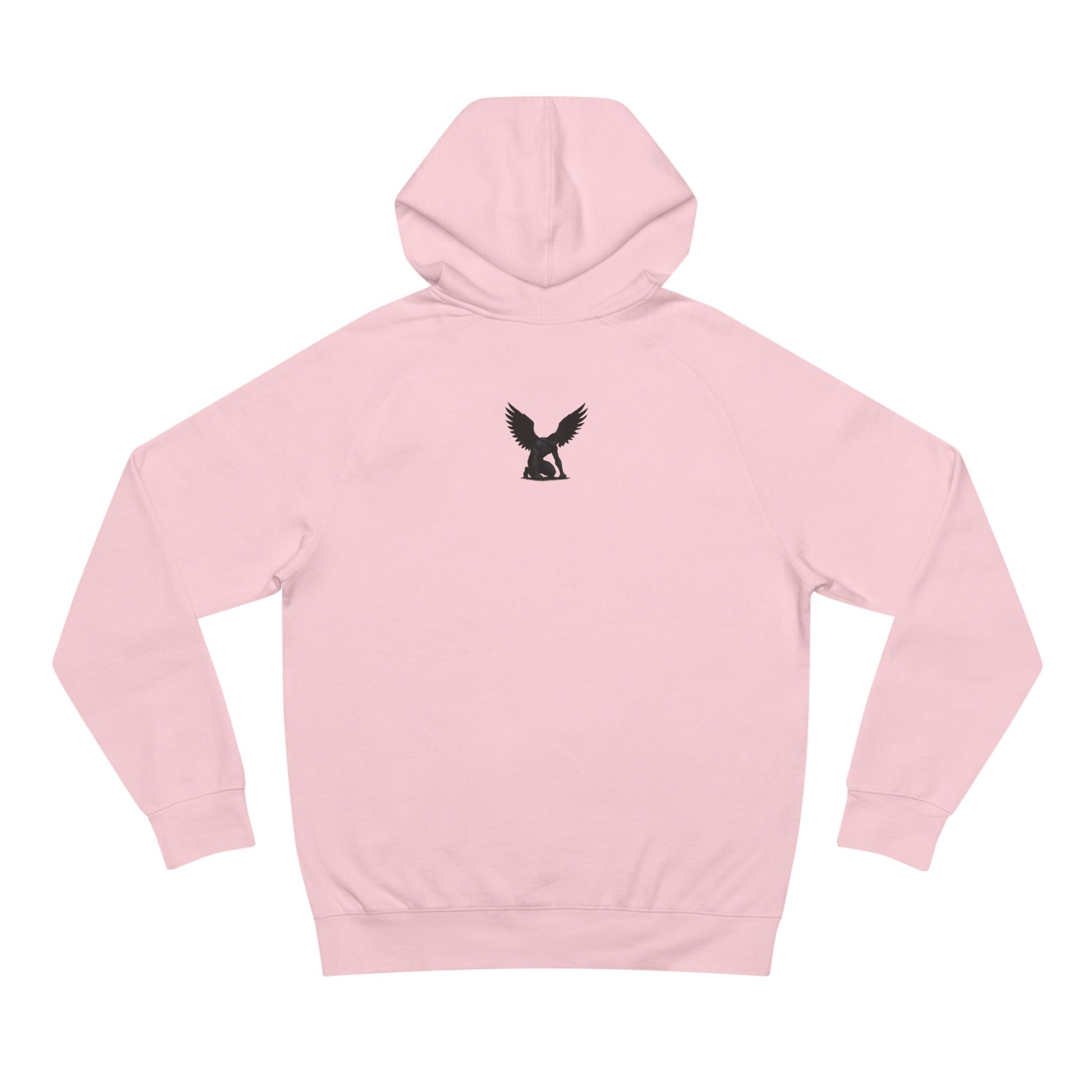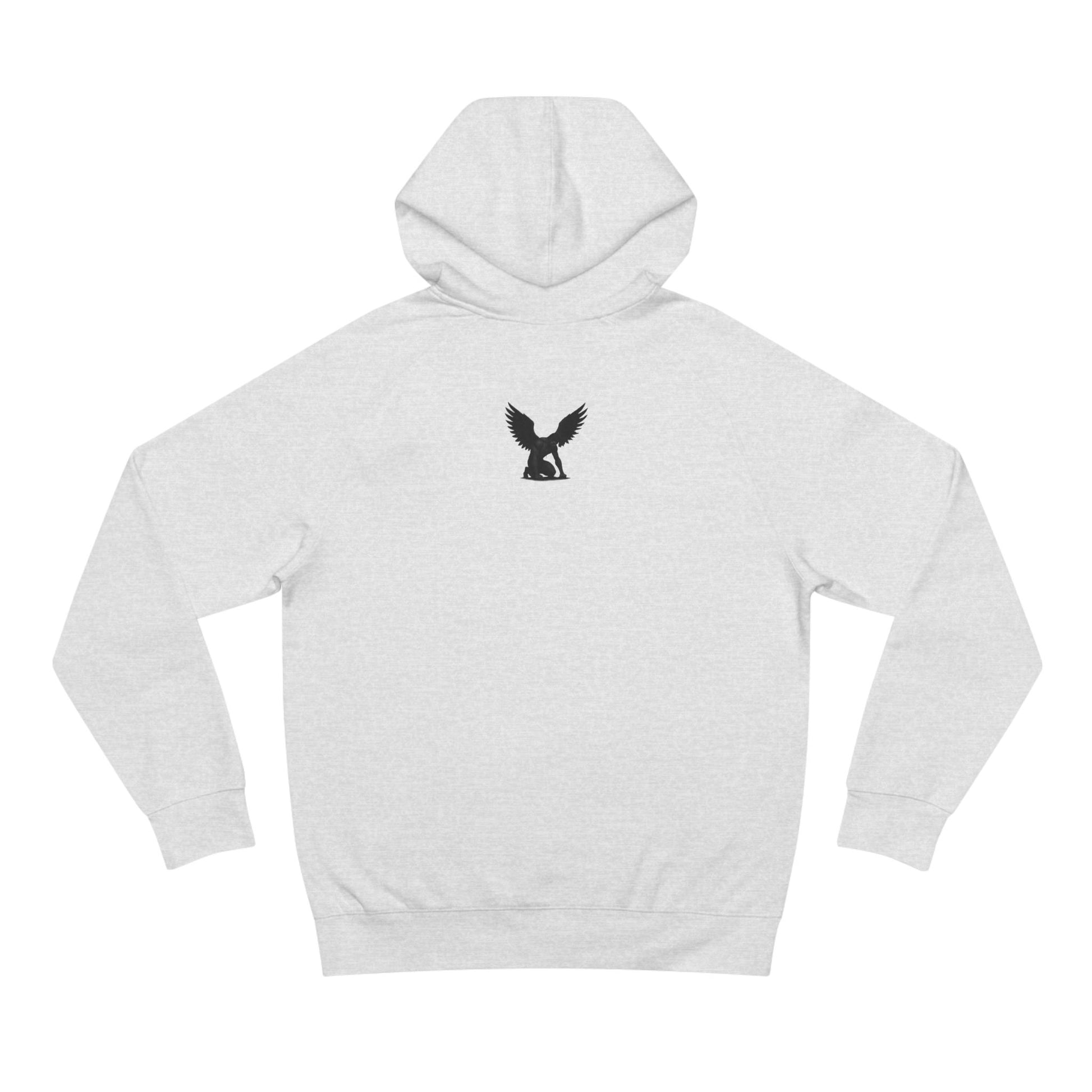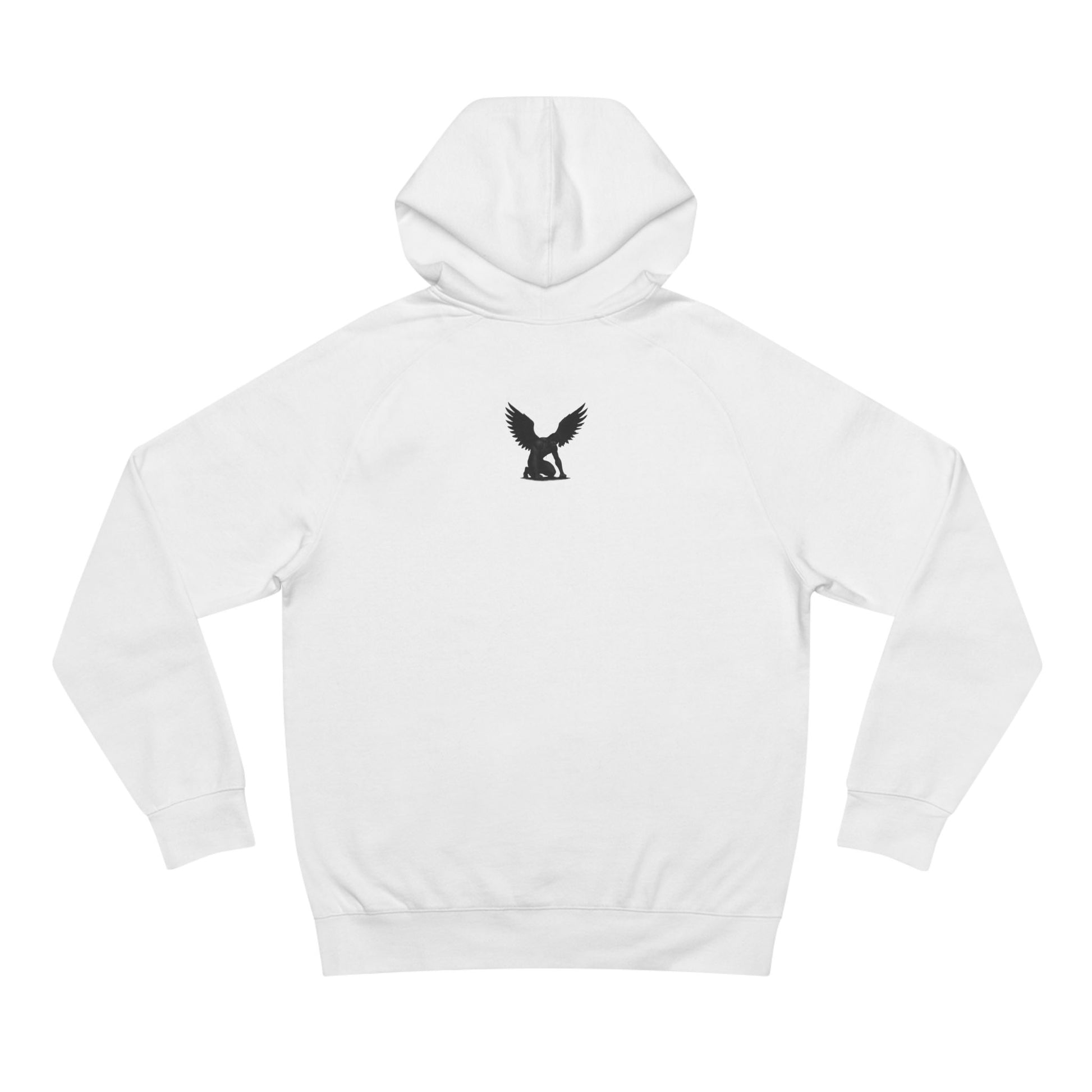 This mid-weight hoodie blends clean streetwear lines with a touch of vintage grit. The white canvas sets off compact black graphics—a stylized wordmark across the chest and a small winged emblem centered on the upper back—giving it a minimal yet rebellious attitude. Soft, brushed fabric and a roomy kangaroo pocket make it feel lived-in from day one, while ribbed cuffs and hem keep the silhouette neat. Wear it over a tee for late-night city runs, throw it on for studio sessions, or layer under a coat for cool-weather commutes. The understated emblem work quietly signals membership in a creative-minded crowd without shouting for attention.